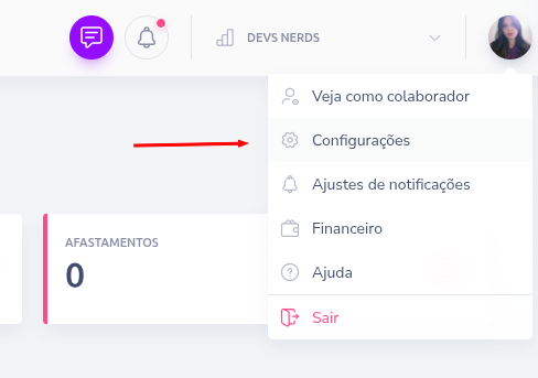 Para acessar a tela de feriados, clique na sua foto de perfil e siga o caminho:
