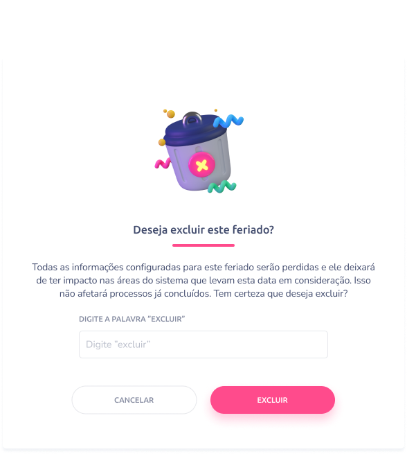 Lembrando que, apenas feriados personalizados podem ser excluídos.⚠️