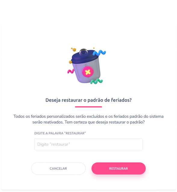 ✅ Mensagem exibida: “Padrão de feriados restaurado com sucesso.”