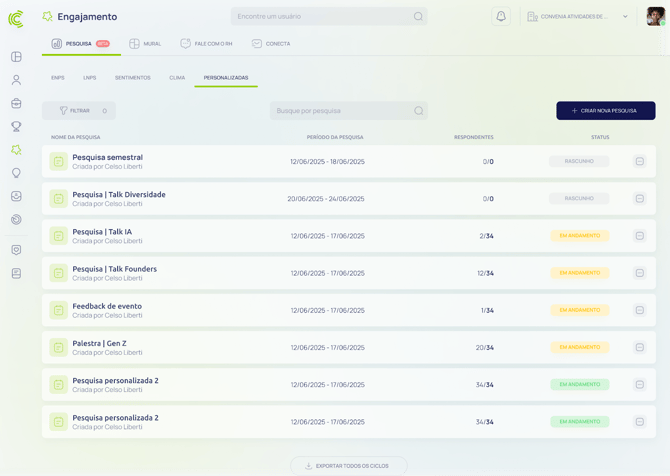 A área de pesquisas da Convenia foi atualizada e agora você pode customizar pesquisas para a sua empresa, tornando a coleta de feedback mais estratégica e prática.