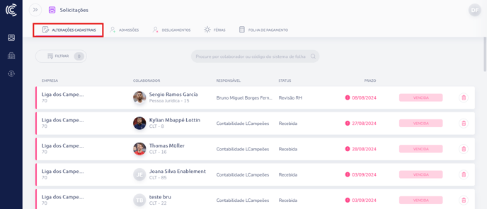 Passo 3) Clique na solicitação desejada para verificar as últimas alterações realizadas no perfil do colaborador;