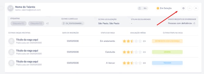 Nota: diferente de outros lugares, aqui as etiquetas são acumuladas. Se você marcou o talento como "Liderança" em uma vaga e "Inglês Fluente" em outra, ambas aparecerão aqui.