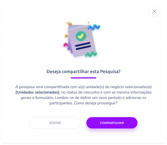 - Será exibido o modal “Compartilhar pesquisa”.