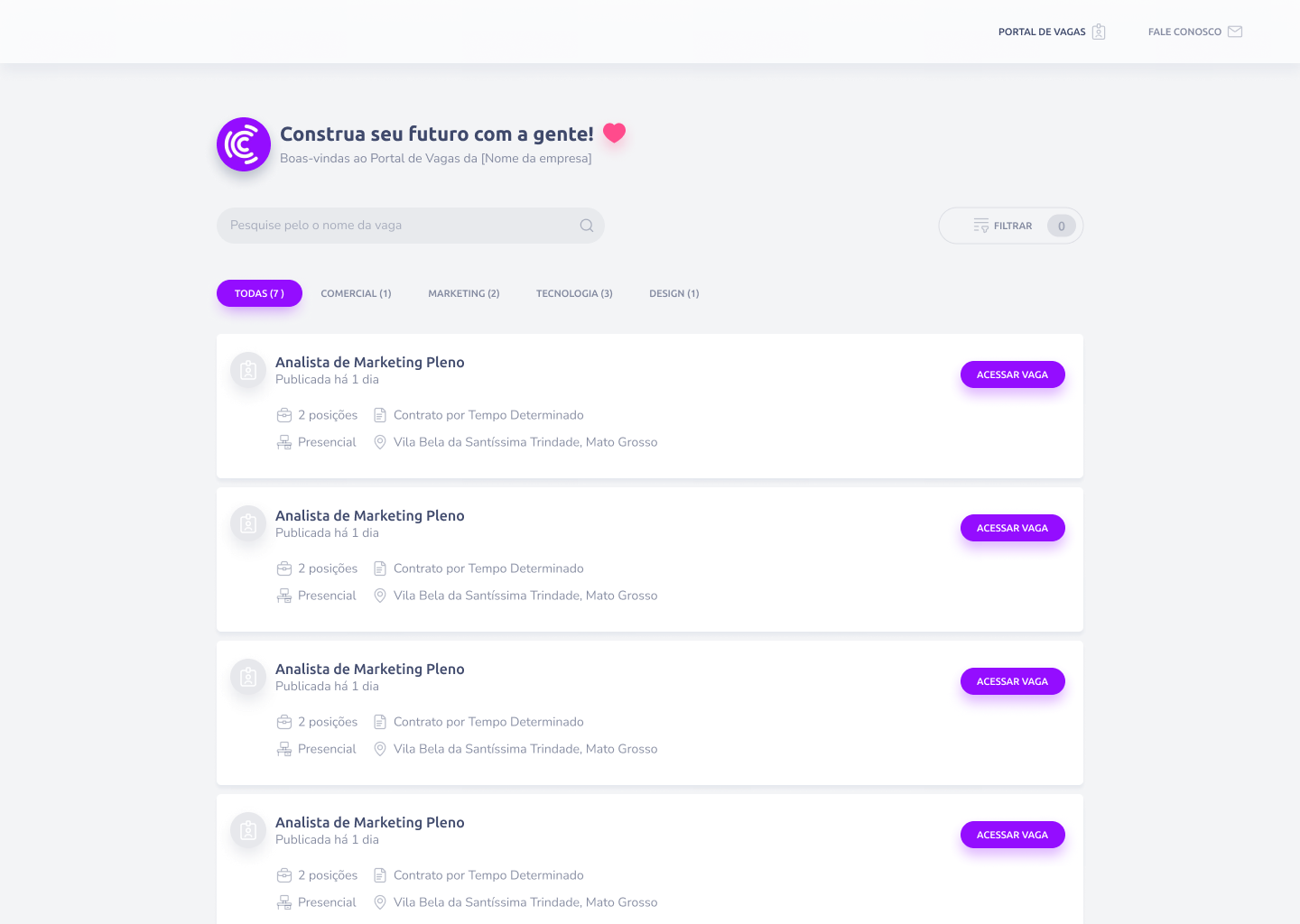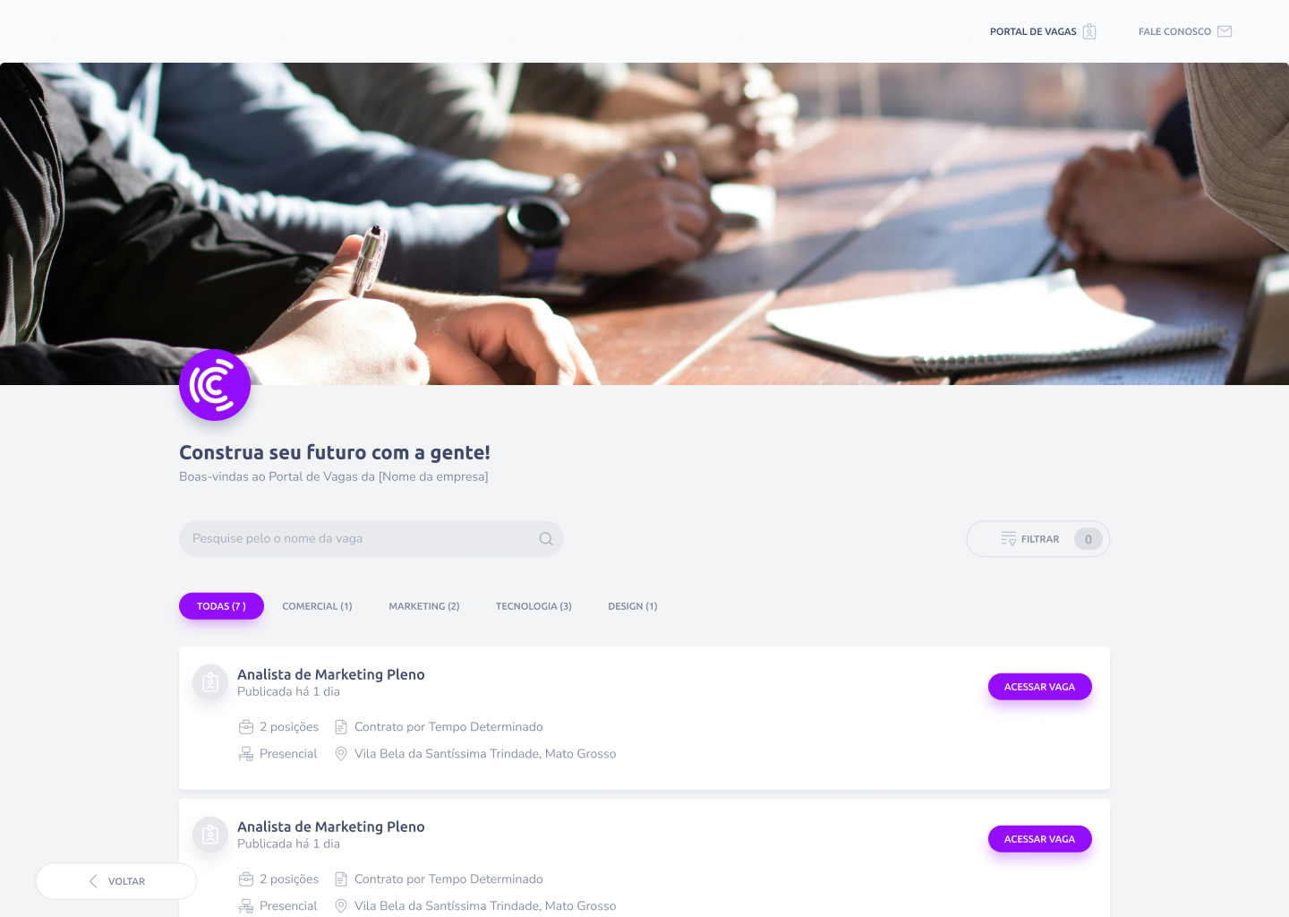 Nesta área você ajusta tudo que diz respeito ao Portal de Vagas usado pelas pessoas candidatas para visualizar e se inscrever nas vagas da sua empresa.