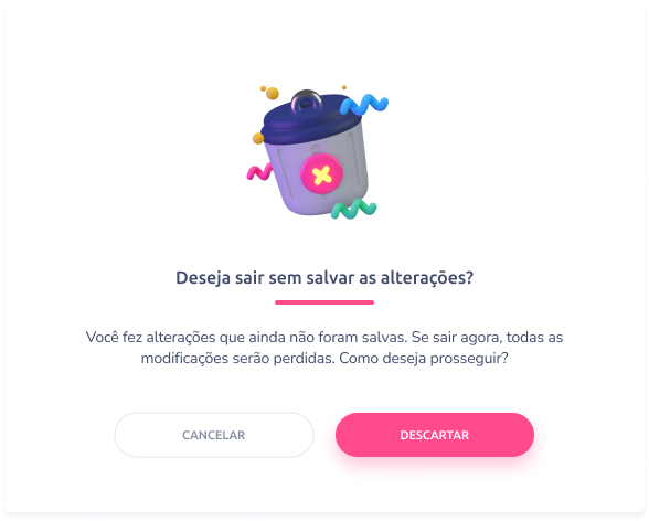 Se houver alterações não salvas e você tentar sair (fechar, voltar ou ir para outra aba), aparece uma janela perguntando se deseja: