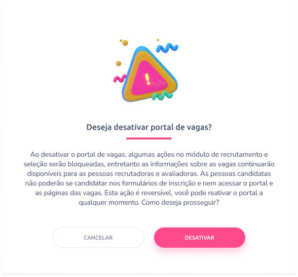 Algumas ações do módulo de Recrutamento & Seleção serão bloqueadas;