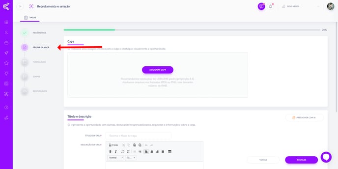 • Upload da capa: opcional, mas deixa a vaga mais atrativa.