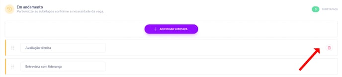 • Excluídas (clique na opção e a lixeira aparecerá para remover a etapa)