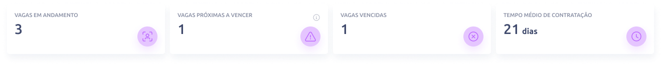 Vagas em andamento: total de vagas ativas no momento.