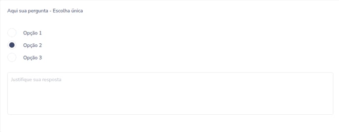 O campo “habilitar justificativa” está disponível em quase todos os tipos de pergunta e permite que o colaborador adicione um comentário explicando sua resposta. Você pode configurar este campo das seguintes maneiras: