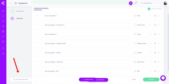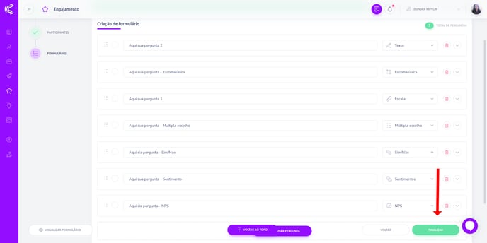 Escolha o tipo de pergunta no menu “Selecione o tipo de pergunta”.
